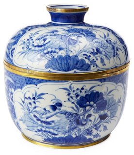 Including fruit bowls, candle holders, and candle plates navy blue decor. Otagiri, navy blue seagull candy / nut serving bowl.gold trim and graphics.